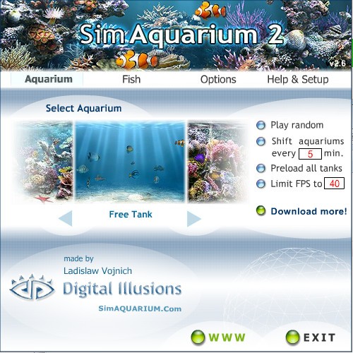 Sim AQUARIUM 2(鱼缸屏保)是一款非常真实的3D虚拟水族箱屏保。你可以选择41种鱼,以及真正的蛤蜊和珊瑚。它的水流效果和随水流方向漂流的各种海洋真的令人难忘。如果你想拥有最正宗的鱼缸屏保,那么下载SimAQUARIUM 2绝对不会让你失望。