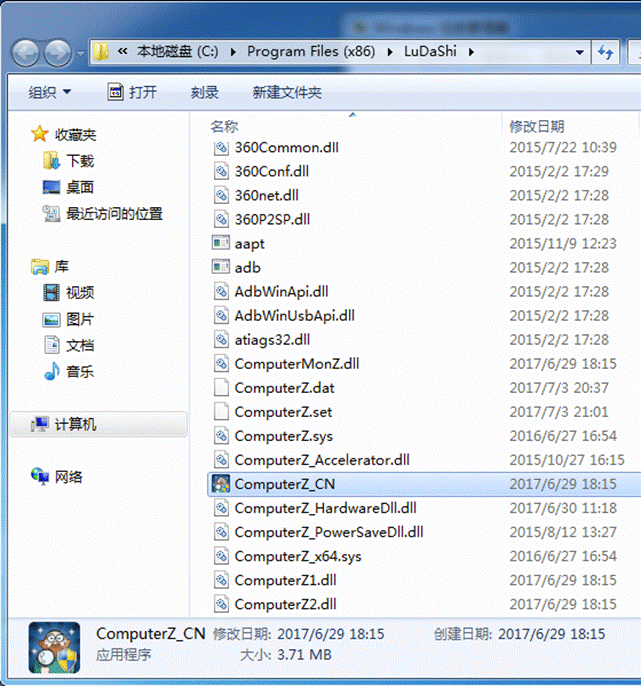 5.这时,你会打开你正在运行的Lu程序及其位置,并自动选择ComrZ_CN.exe(有些系统可能没有这个词。exe)文件: