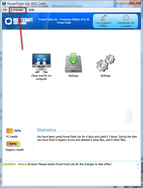 1.PowerTools Lite小而不臃肿。安装后的默认语言是英语,您可以在“语言”菜单中将其更改为中文。