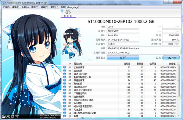 CrystalDiskInfo是一款检测硬盘的免费软件。/[k0/]可以告诉我们硬盘当前的健康状态并显示当前硬盘的详细信息。通过读取磁盘S.M.A.R.T来检测磁盘的温度和健康状态是/[k0/]的主要功能。可以随时查看健康状况,软件会自动给分,还可以查看体温等等。可以查看接口、转速、温度、使用时间等各种参数。运行时只需短暂扫描,相关数据即可读取并显示在程序窗口中。但是很多参数数据是专业的,对于普通用户来说可能不太容易理解,但是比较常规的会显示在显眼的地方,比如当前的温度、健康状况、序列号、缓存、容量等。有了这些,相信你也能对硬盘有个大概的了解。只要登录软件,观察一段时间,就能看到软件。对于专业人士来说,可以看到自己想要的相关数据,非常具体。你也可以改变不同颜色的皮肤,用户可以根据自己的喜好进行改变。不时对硬盘进行测试,不仅有利于硬盘的持久使用,对数据的安全保护也至关重要。当硬盘即将损坏时,它会发出警报,随时保护您的数据。这次小编给大家带来的是这款软件的绿色萌芽版,不需要安装,萌芽的卡通人物加到了原来的基础上。萌芽元素的加入让严肃呆板的程序界面生动可爱,让硬盘检测成为一种享受,感兴趣的朋友可以下载体验一下。