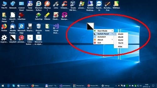 运行简单黑暗模式时,使用开始模式在黑暗和明亮的窗口主题之间切换。第二个选项“切换面板”在屏幕上放置一个浮动图标。它在功能上与系统托盘图标相同。默认情况下,此功能未启用,您可以在不需要时隐藏它。我认为它在使用全屏应用程序时可能会很有用,但是任务栏图标做得很好。您可以更改开关面板的大小以减少干扰。程序托盘图标中的主题菜单项可用于将界面更改为暗/亮模式。