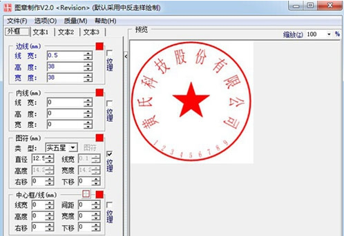 图章制作是生活中非常实用的印章制作软件。您可以创建一个标准图章,定义图章边缘线的线宽、高度和宽度、图标的类型和与中心边框线的距离,并设置图章中三个文本的DPI精度、内容、格式和属。图章制作图片样式包括圆形章、椭圆形章、方形章、扁平章、三角形章和菱形章。图章制作该软件可以输出到png、gif、bmp、jpg和tif等图像格式,可以将多张不同效果的邮票组合成复杂的邮票,并可以对图像进行各种特效处理。