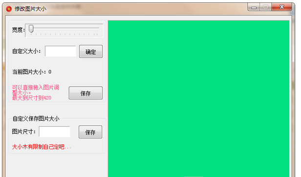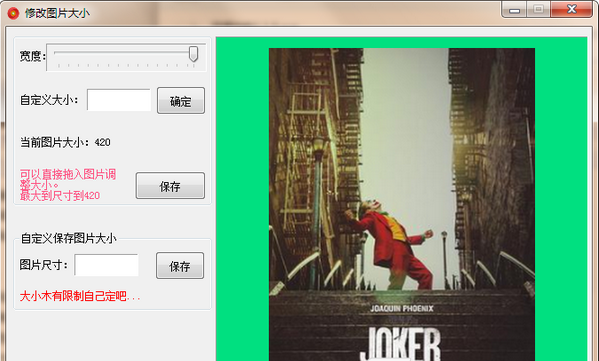 第二,软件最大宽度只有420。拖动顶部的滑块自定义图片大小。