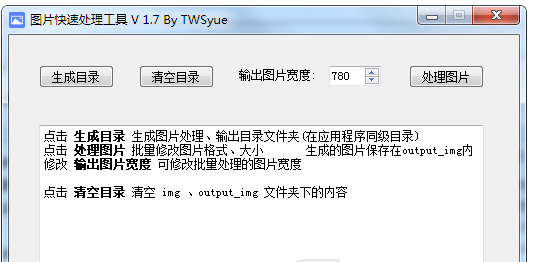 点击 处理图片 批量修改图片格式、大小 生成的图片保存在output_img内点击处理图片,批量修改图片的格式和大小,生成的图片保存在output_img中。