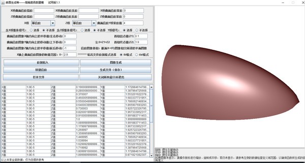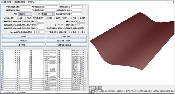 曲面生成帮是一款专业的曲面生成软件,采用函数输入生成曲面的方式来生成曲面。通过记忆曲面常用的数学表达式和个人数学创造力,可以轻松生成曲面,支持将数据导入PROE或UG。