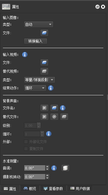 Pano2VR支持平面、圆柱体、球体(等矩形)、立方体面、交集、t、bar、QuickTime VR作为输入格式,也可以在这些格式之间进行转换来修饰立方体面。支持的文件格式有JPEG、PNG、TIFF、BigTIFF、Photoshop PSD/PSB(每通道8、16或32位)、OpenEXR、Radiance HDR和QuickTime VR文件。