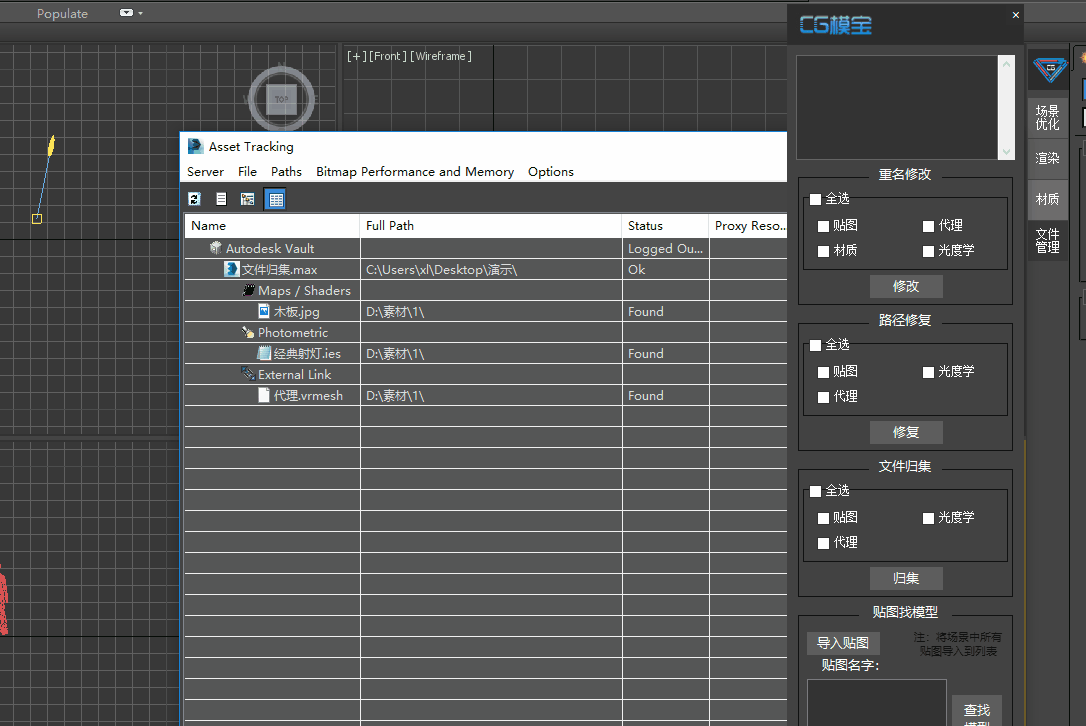 检查地图、代理、材质和测光。单击“修改”修复当前场景中相应的重复项目。