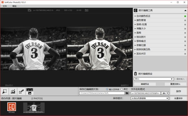 PhotoEQ工具和滤镜用于调整、裁剪、旋转、剪切、拉直、锐化、去噪和修复红眼。