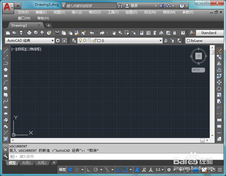 1.首先双击打开cad2019。如下图所示,显示的工作空间不是经典模式。