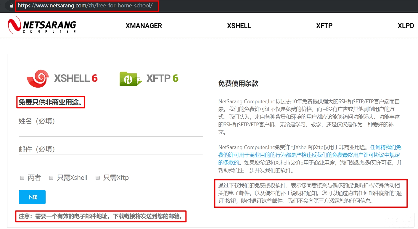 1.转到官网活动页面:https://www.netsarang.com/zh/free-for-home-school/(说明:这是全球官网,http://www.xshellcn.com是区域经销商网站。为了商业利益,经销商没有把免费版本放在自己的网站上,但软件是由外国总部开发的。由于总公司对个人是免费的,我们当然可以个人使用这个免费版本)。
