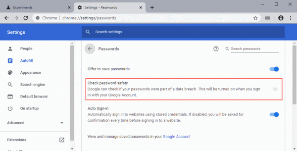 以前,密码检查只是作为一个单独的Chme扩展或作为谷歌网络仪表板的一部分提供的。从Chme 79开始,密码检查实用程序已经集成到Chme本身。要使用它,Chme用户必须登录他们在Chme的谷歌帐户。