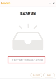 3.如果没有绑定在手机上,会提示“请使用手机客户端添加设备并刷新”,需要先绑定在手机上,然后登录PC使用;