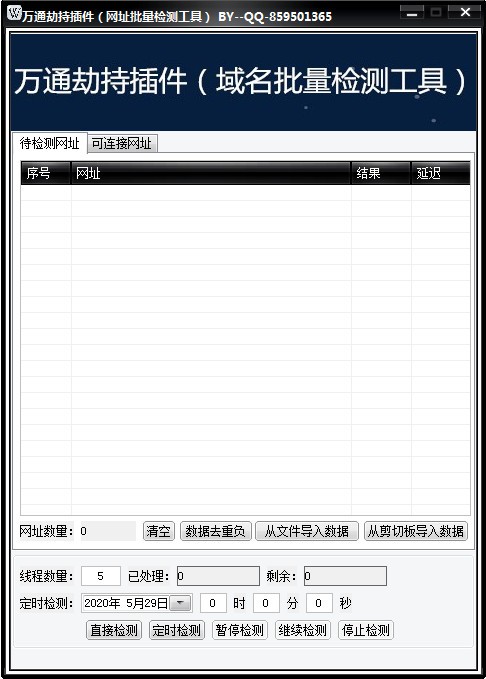 万通劫持插件(域名批量检测工具)是一个简单易用、功能强大、一键生成和域名劫持的插件程序。该工具的主要功能是一个有效的域名综合检测工具,可以针对那些域名检测出不可访问的网站,并保持网站的直播和可访问!