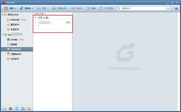 1.首先,我们在Foxmail的客户端找到用于发送邮件的电子邮件地址,点击电子邮件地址下方的“已发送邮件”栏,找到需要撤回的邮件。