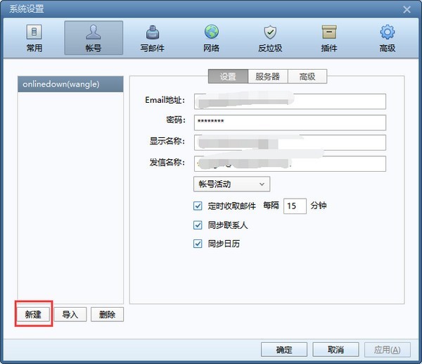 2.在打开的foxmail邮箱设置窗口上方点击【】,点击左下角的【新建】。