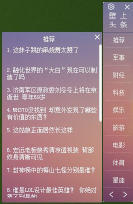 壁上头条版是一款桌面新闻信息阅读软件,可以自动附着在桌面边缘,不仅阻碍你的工作,还能及时获取新闻信息。我们不需要专门打开网站查找信息,一键就可以轻松搞定。用户可以观看个人裁缝需要关注的信息头条,快速便捷地分享自己感兴趣的信息。