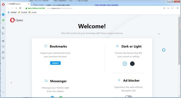 Opera浏览器绿色便携版是挪威Opera软件ASA公司生产的网页浏览器,支持多页选项卡式浏览。Opera浏览器作为一款主流的桌面浏览器,以其速度快、体积小、比其他浏览器具有更好的标准兼容性,受到了互联网上很多人的高度赞扬。