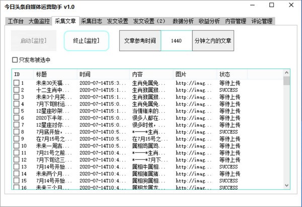 1.这个程序用来管理自己在今日头条发表的文章,支持批量工作,方便实用!