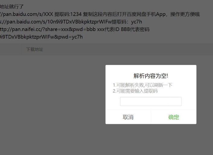 如果解析内容为空,会弹出提示。如果不需要提取代码,您可以刷新它。