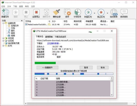点击下载下载文件,弹出IDM下载进度窗口;