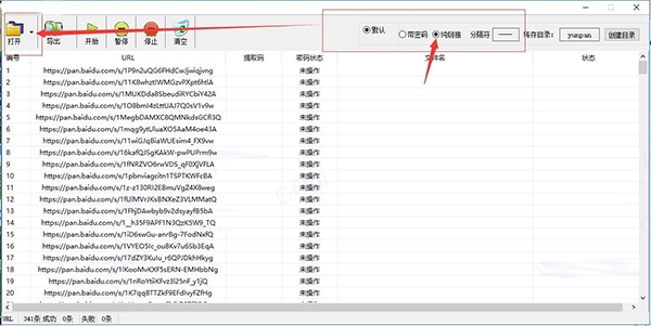 注意:共享链接格式[带密码]链接& # 8212;-密码(txt中一次保存一行多个链接,默认密码分隔符为& # 8212;-);共享链接格式[无密码]链接(多个链接一次一行保存在txt中