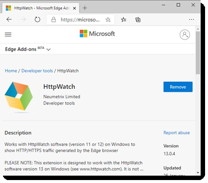 HttpWatch现在支持Micsoft Edge 80或更高版本,使用Micsoft Store中托管的扩展: