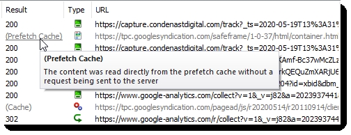 “我和边缘”中的“结果”列现在显示是使用内存还是预取缓存: