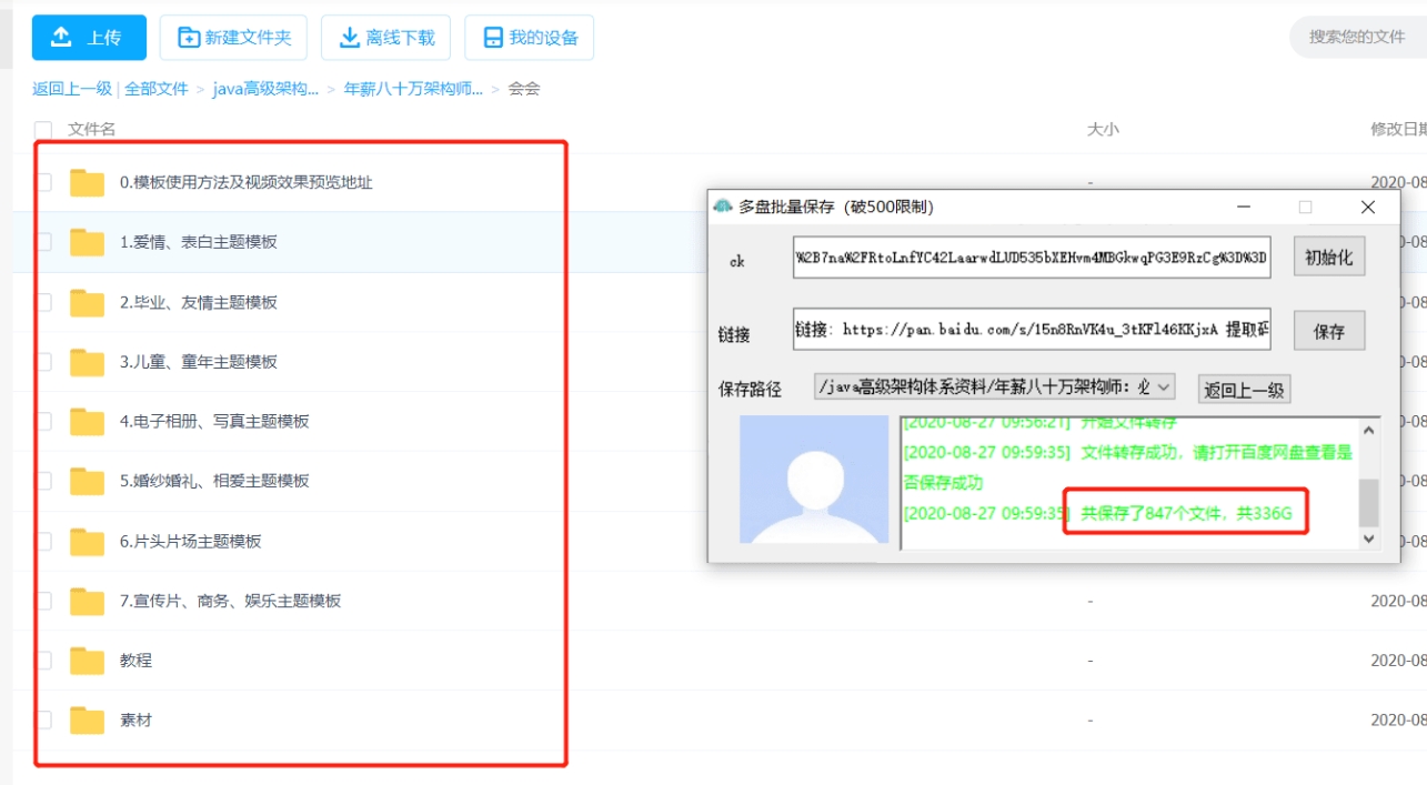 多盘批量保存(打破500限制)是一款解除百度云网盘保存文件数量限制的工具,解决了吧里大家共享的文件。但是我不是会员,不能一键保存。支持百度网盘共享链接的传输和下载,分析用户百度网盘中的所有文件。