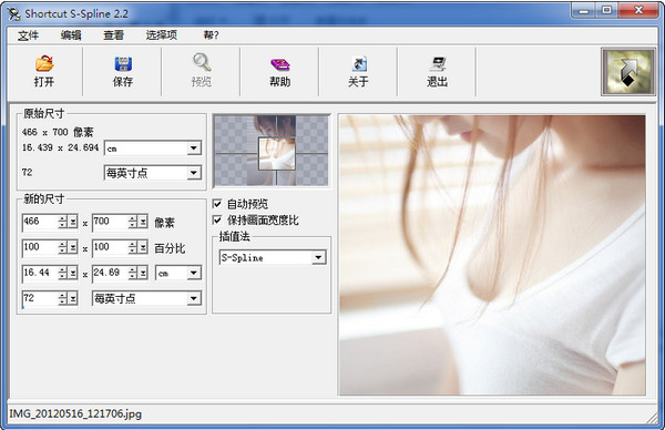 S-Spline是一款不失真的图像放大软件,可以使放大后的图像不失真。一般图像放大后总是会出现锯齿,但是使用这个软件后,就不会出现锯齿的图像了,依然清晰。然而,即使如此,当缩放图像的比例太大或太小时,图像本身仍然会失去应有的效果。