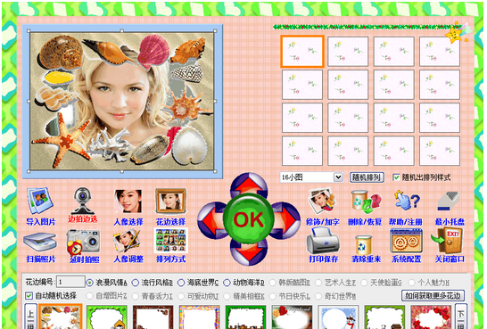 本软件有各种精美背景图案及前景花边图案,可以任意选择背景及前景花边,自己作拍摄,一改过去那种传统摄影呆滞刻板的模式,也消除了被人盯着的尴尬心理,自己设计不同的姿势、表情,挑选组合图大小、数量、款式各异的背景花边来衬托你的潇洒美丽,没有人干扰你,随心所欲,挥洒自如,充分展示真我风采,而且只需一分钟就可拿到照片,照片可以保留或剪开贴在手机、BP机、钱夹、记本等任何地方,这种既体现自我又超时尚的新潮玩法,怎么不叫人为之倾倒、痴迷、疯狂呢?
