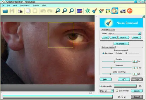 一种图像处理工具,可以去除图片上的人为痕迹,如JPEG图片的斑点和边缘、噪声、热像素、灰尘、波纹、彩条、抖动等。使用同样的技术,也可以帮助你自然放大画面,不失真。