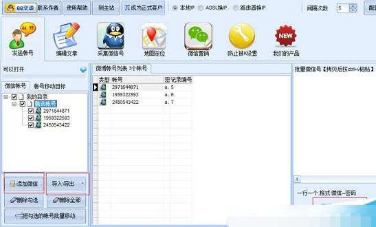 1.打开第一个界面。可以输入或导入微信、QQ号、手机号登录微信群发: