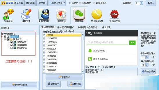 这个软件是一个全自动的微信推广工具,包括微信管理、QQ号和手机号搜索、地图坐标选择和定位、搜索陌生人和朋友、摇一摇、问候附近的人、发送所有朋友。为了防止被K攻击,可以做多周期营销,使用ADSL模式,路由器切换到IP,简单。