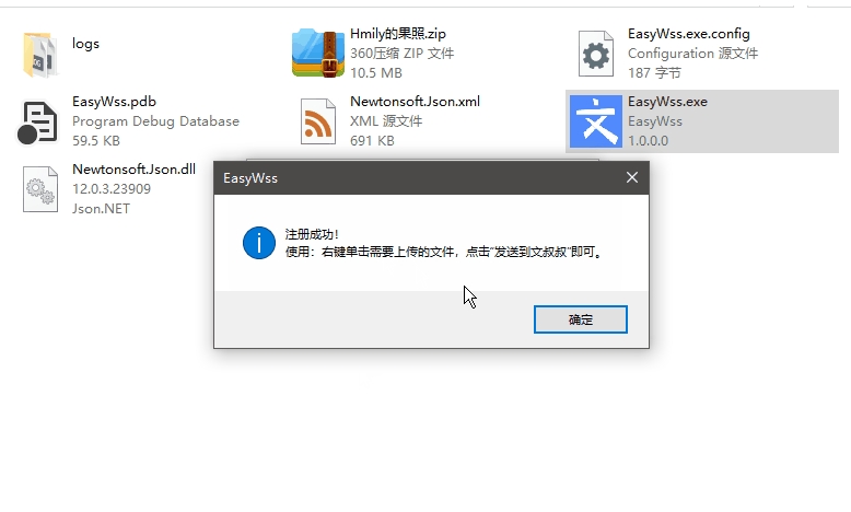首先我们点击注册程序,注册程序会将上传功能写入系统的右键菜单,这样就可以选择右键文件进行上传。