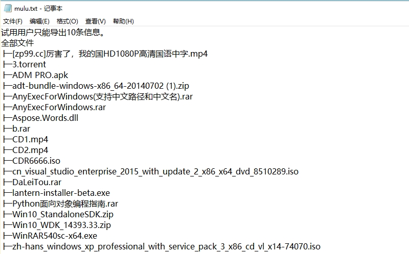 1.支持导出整个网盘的所有文件或指定目录结构;2.支持导出为txt格式和html格式。