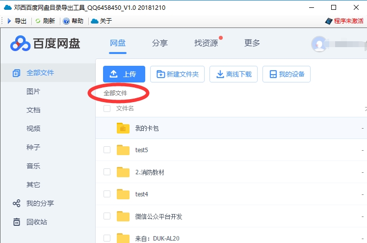 如果要导出网盘所有目录,直接进入“我的网盘”。