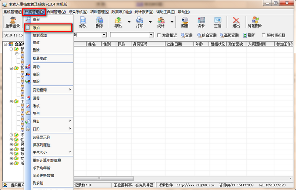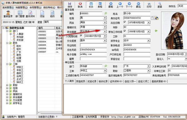 求索人事档案管理系统是的,是一款操作简单,功能优秀的人力资源管理软件。根据现阶段的人事管理工作,用户可以通过该软件方便地输入和管理员工。软件还支持查询统计、导出EXCEL、打印输出等功能。是人力资源管理的好帮手。