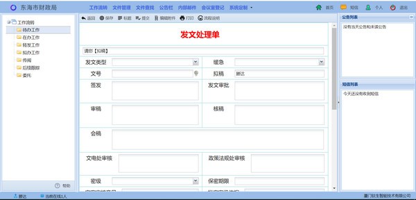 工作流是系统的核心,单位内的公文处理和常规审批都在工作流中进行。处理者可以跟踪后续工作,流程管理者可以监控相应流程中的工作。文件管理用于保存流通结束时的文件。