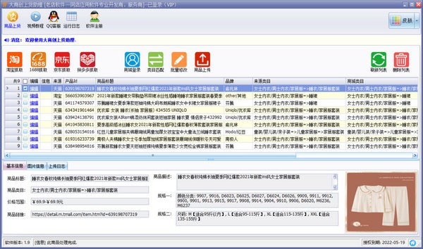 大商创吴尚是一款可以批量收集淘宝、天猫、JD.COM、1688、拼多多产品,直接上传到大商创自营店铺的产品。平时加货的时候,手动的话会比较麻烦,效率也不高,一不小心就会上传错误。有了这个软件,它可以自动帮我们添加商品需要的类别,提高效率,非常适合拥有自己网店的用户。