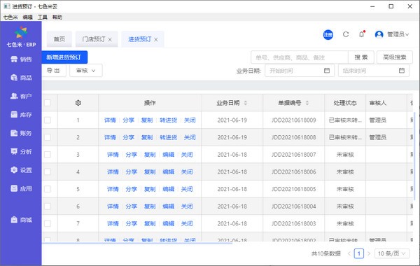 七色米ERP是一款非常方便的多功能软件,适合有下游订货需求的批发商,多渠道营销,数字化批发业务。