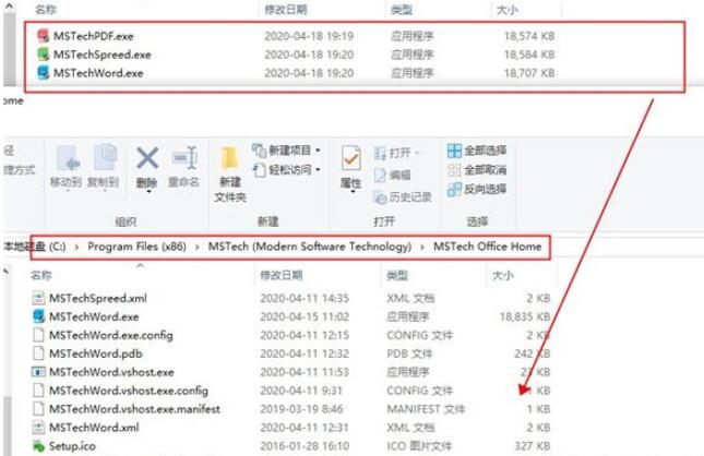 3.将破解文件夹中的补丁复制到软件安装目录。默认路径是:C: pg RAM files (x86) MS Tech(现代软件技术)MSTech Office Home