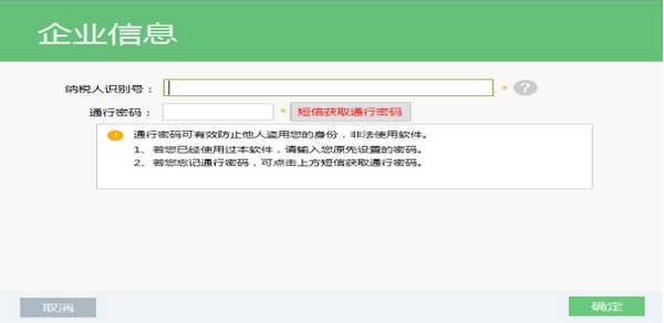 初始化:登录软件后,弹出企业窗口,用户如实填写纳税人识别号和密码。