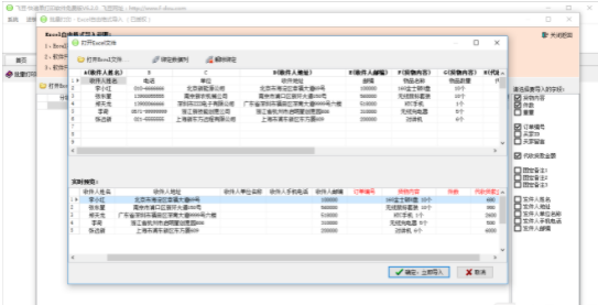 5.一般来说,卖家从电商网站下载的表格都是快递打印的,姓名、地址、电话等格式相对固定。我们在第一次导入Excel文件时,有时需要“绑定数据列”,这样以后在导入相同格式的Excel文件时,飞豆快递打印软件会智能识别之前绑定的数据列,直接导入,减少了时间成本。下图是我们要导入到批量打印中的卖家列表格式。