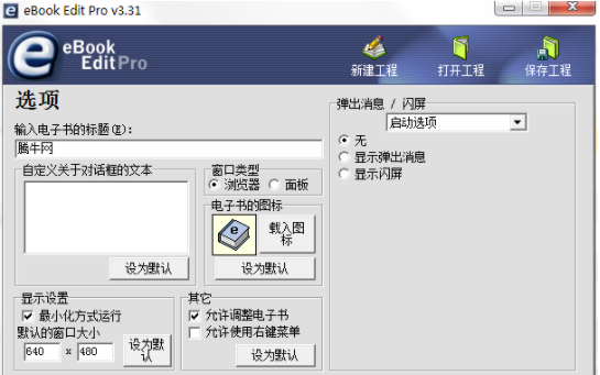 1.打开软件,点击新建项目,输入电子书标题、窗口类型、电子书图标,开始制作。