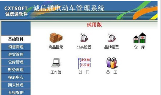 诚信通电动车管理系统是一款功能强大的电动车管理软件。该软件具有员工管理、开票、退货、业务查询、收银查询、客户管理、采购开票、采购退货、仓库管理、财务管理等主要功能。