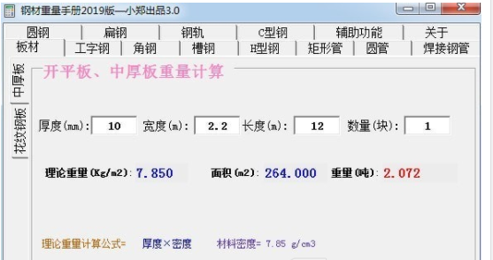 新功能:可以改变钢材的密度,适用于各种密度物料的重量计算。