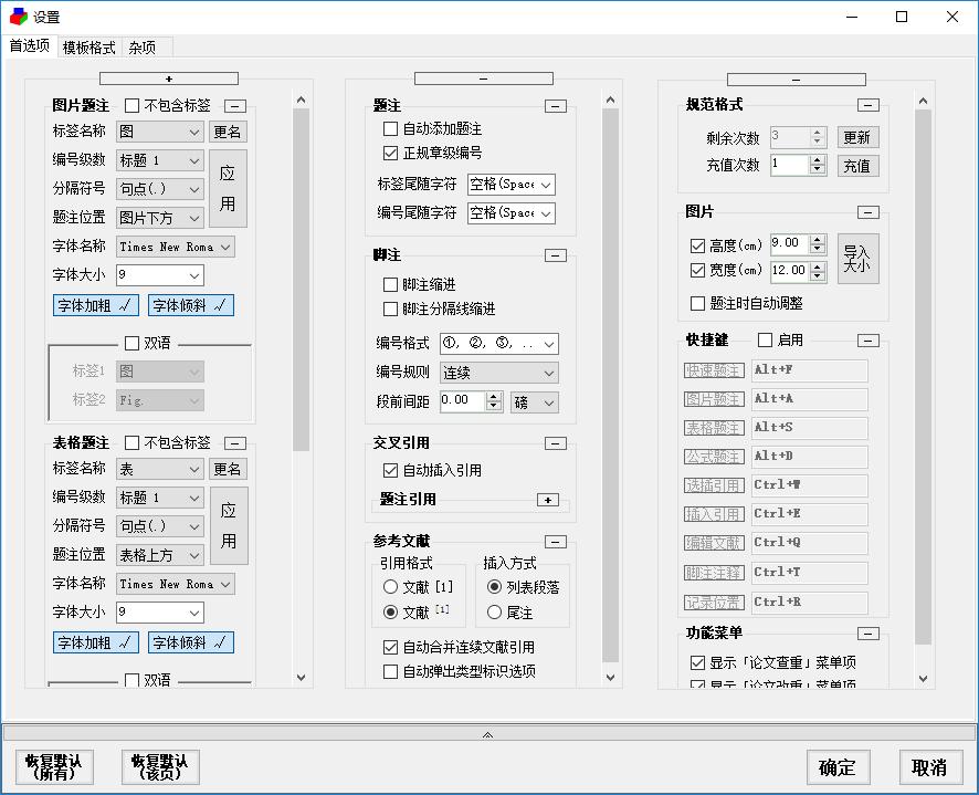 论文格式快速排版辅助应用是专门为学位论文、学术论文、科技报告等文档的高效排版而开发的桌面应用。通过它可以一键创建标准格式的纸张模板,一键插入图片、表格、公式的题注或交叉引用,一键编辑参考文献,一键插入脚注,智能记录文档位置,智能插入纵横页面,快速进行多图排版等。(用2007及以上版本的Word或2016及