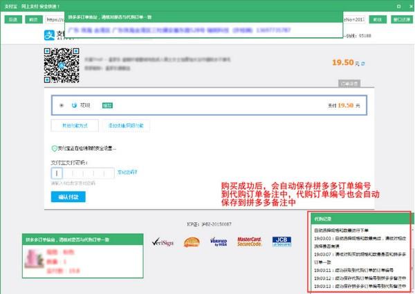 5.购买完成后,软件会自动将拼多多订单号保存到购买订单的备注中,购买订单号也会自动保存到拼多多的备注中。