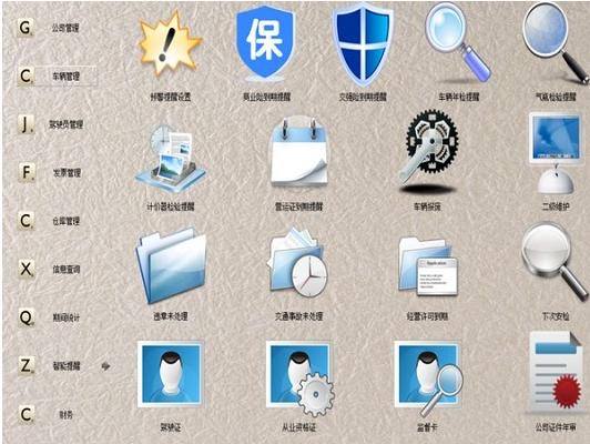 1.车辆管理:车辆明细、驾驶员名单、车辆购置费、车辆保养、车辆保险、车辆购置票、车票明细、交通违章记录、奖惩记录、运营违章记录、交易记录、投诉记录、好人好事、驾驶员明细、非购置费;