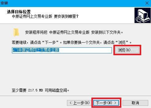 1.在下载资源库中找到中原证券网上交易专业版。下载完成后,双击进入安装程序,点击下一步继续安装。